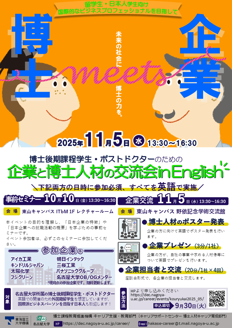 We will hold an event where company representatives and doctoral students can interact with each other in English.