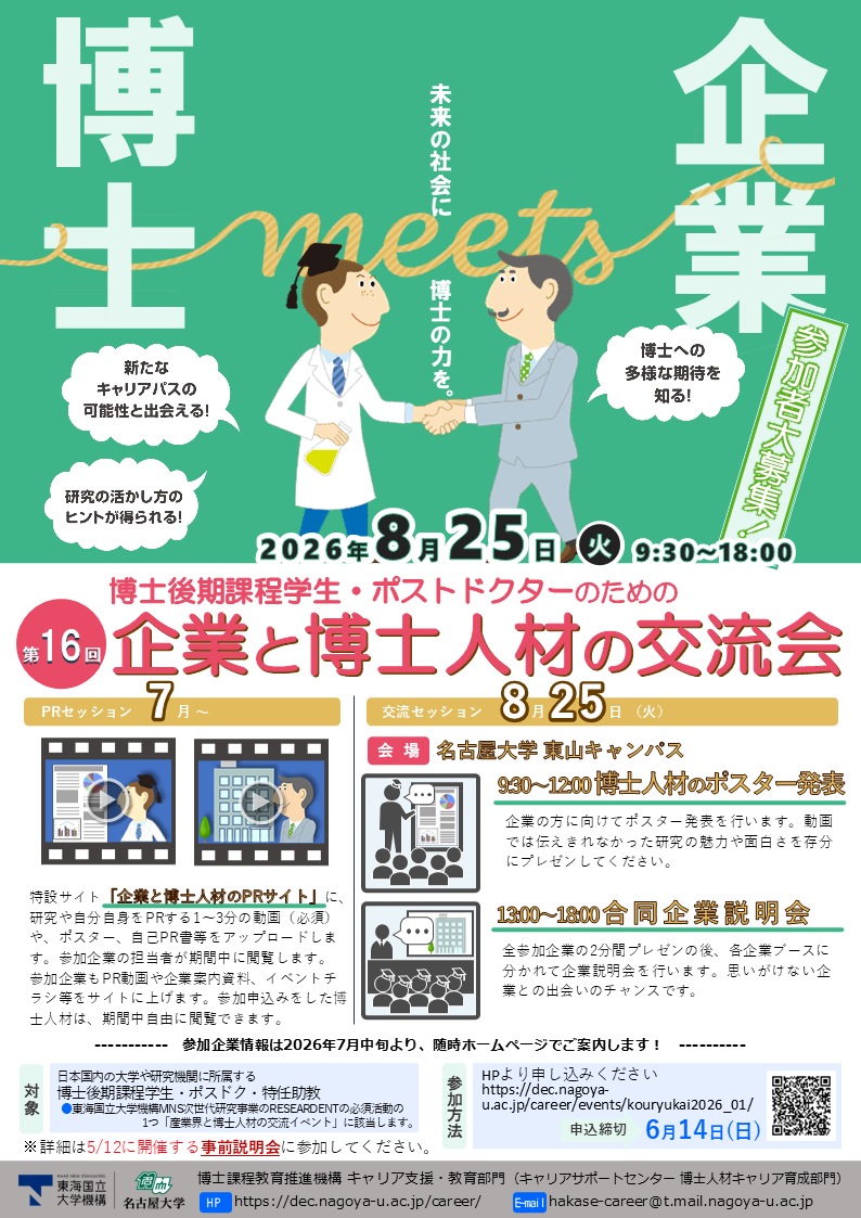 第16回『企業と博士人材の交流会』参加博士人材募集!