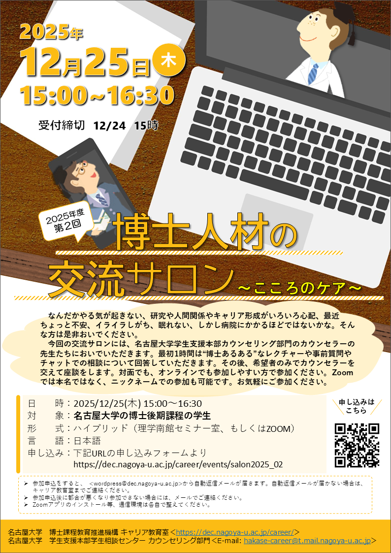2025年度第2回博士人材の交流サロン~こころのケア~