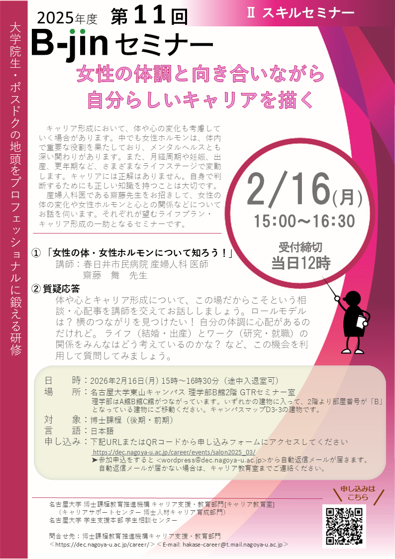 2025年度第11回B人セミナー「女性の体調と向き合いながら自分らしいキャリアを描く」