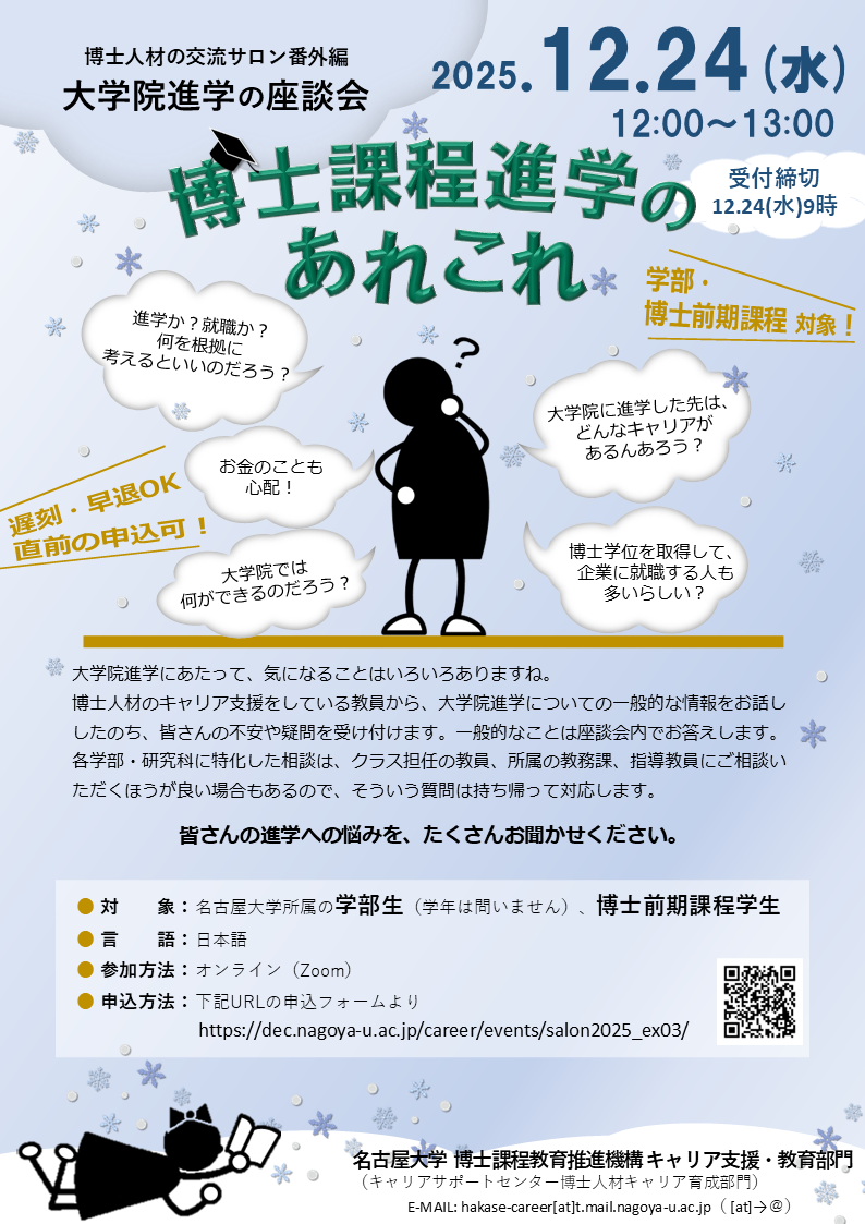 - 対 象:名古屋大学所属の博士前期課程学生、学部生