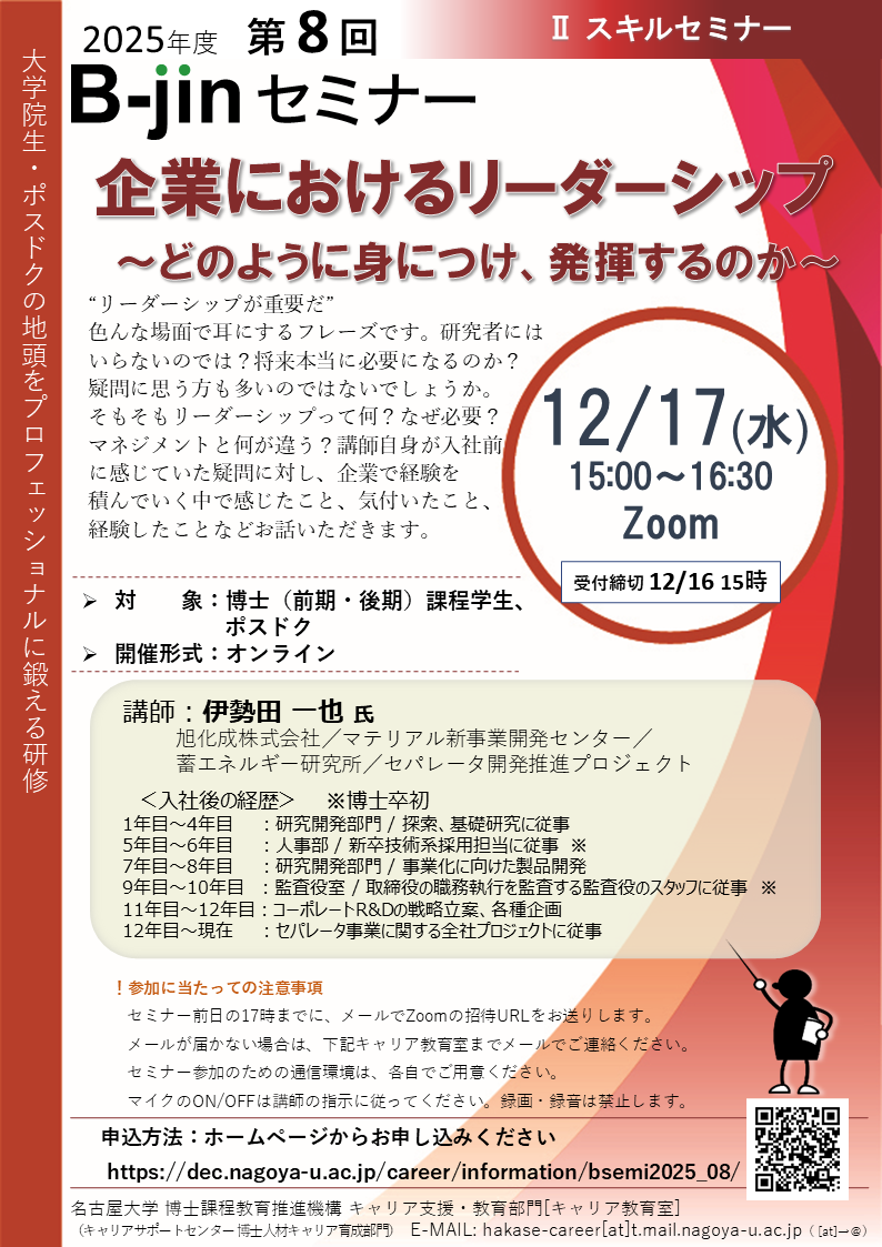 お問い合わせフォームより 博士課程教育推進機構 キャリア教育室 までご連絡ください。