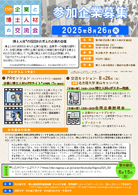 博士人材の採用をお考えの企業の皆様と、産業界への就職も視野に入れ、多様な業種・分野の企業の皆様との情報交換を希望する博士人材との交流の場として、『企業と博士人材の交流会』を開催します。