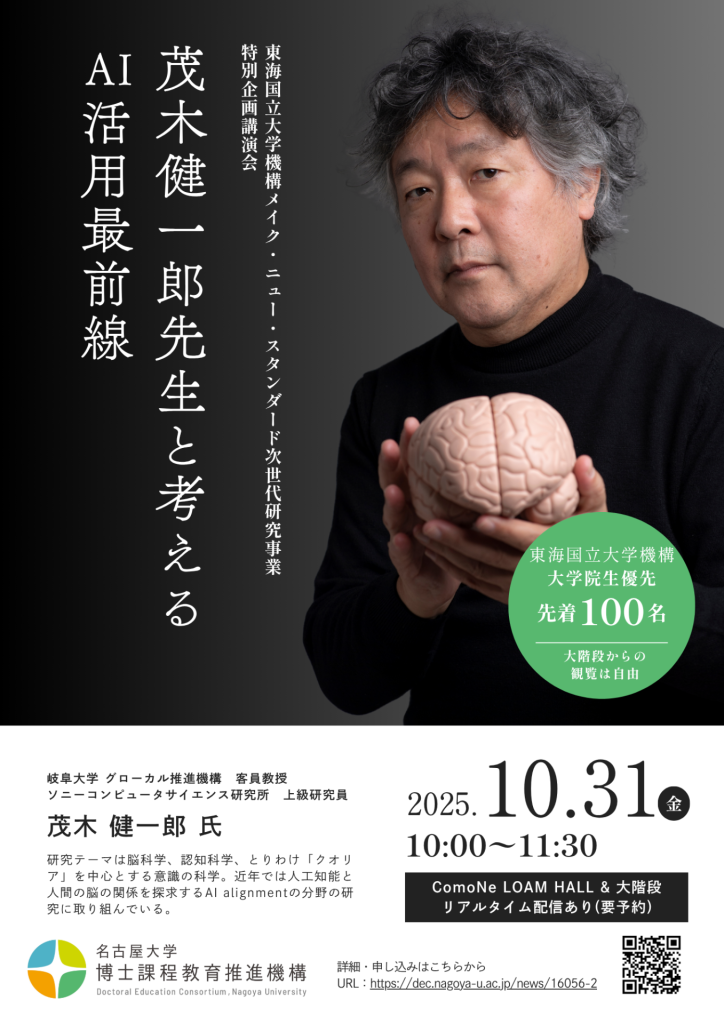 茂木先生が実際にどのように生成AIを活用しているのか、具体的な事例を通して共有いただき、AIを研究・仕事・生活に取り入れるヒントを探ります。
