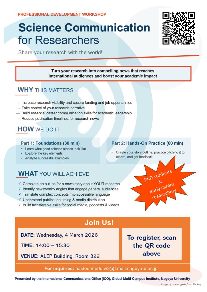 - 主催:名古屋大学 International Communications Office(ICO)