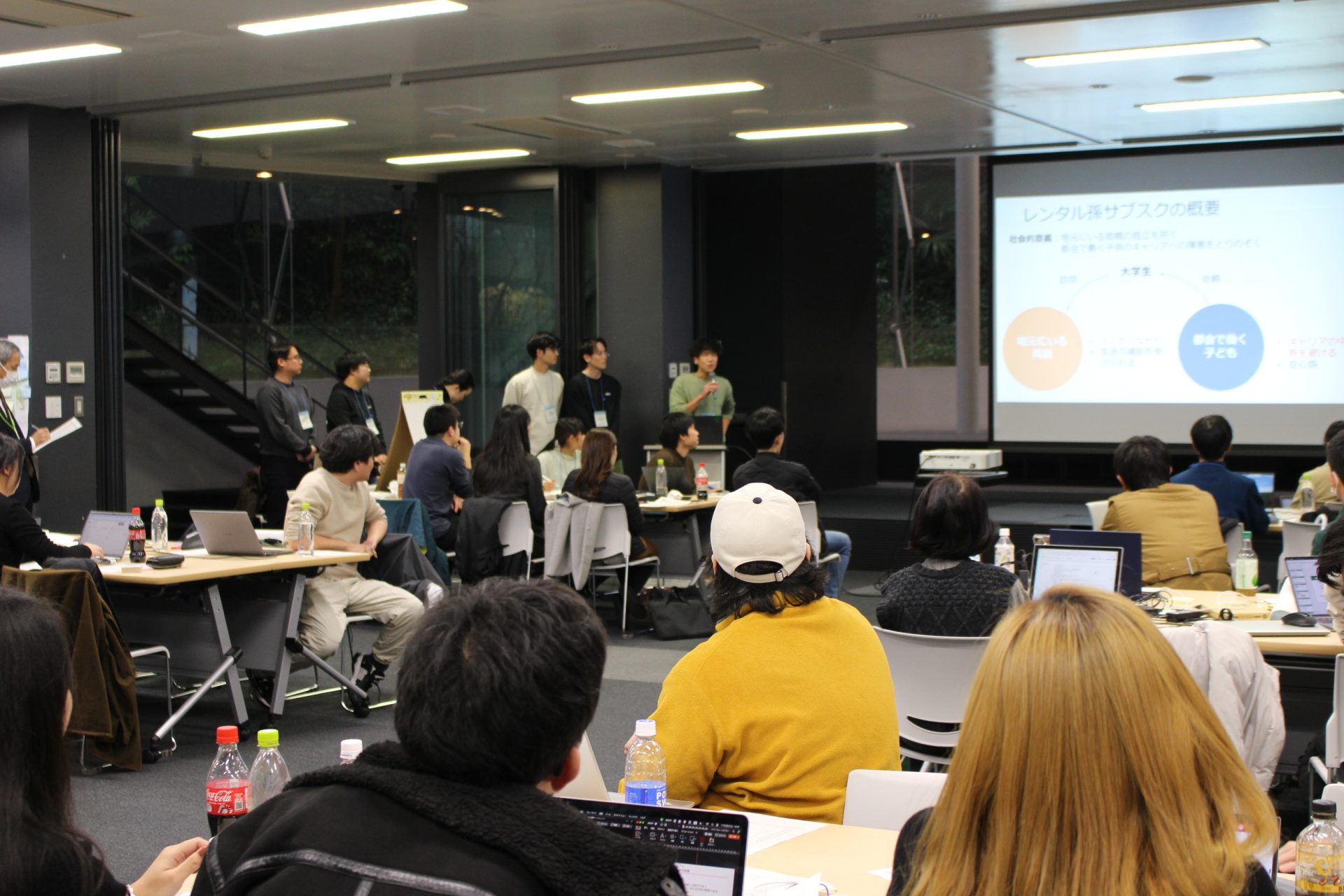 グループワークでは、それぞれのグループでWell-Beingをいかに実現するか話し合い、初日の中間発表から、多様な視点でのWell-Beingへの課題と取り組みが発表されました。2日目も午前中かけて、発表に向けての議論のまとめと準備を集中して行い、午後には最終プレゼンテーションと質疑応答を行いました。いずれも中間発表より1段具体化した内容の濃いものとなり、また質疑応答も一部時間オーバーとなるくらい活発でした。最優秀グループを参加教職員・学生全員で選びました。