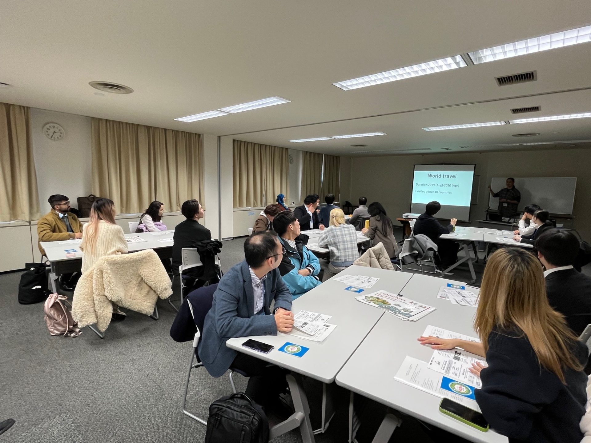 On December 19, we visited the JICA Headquarters and the JICA Global Plaza. A total of 19 doctoral students from diverse fields such as humanities, economics, medicine, science, bioagricultural sciences, engineering, and environmental studies participated in the visit.