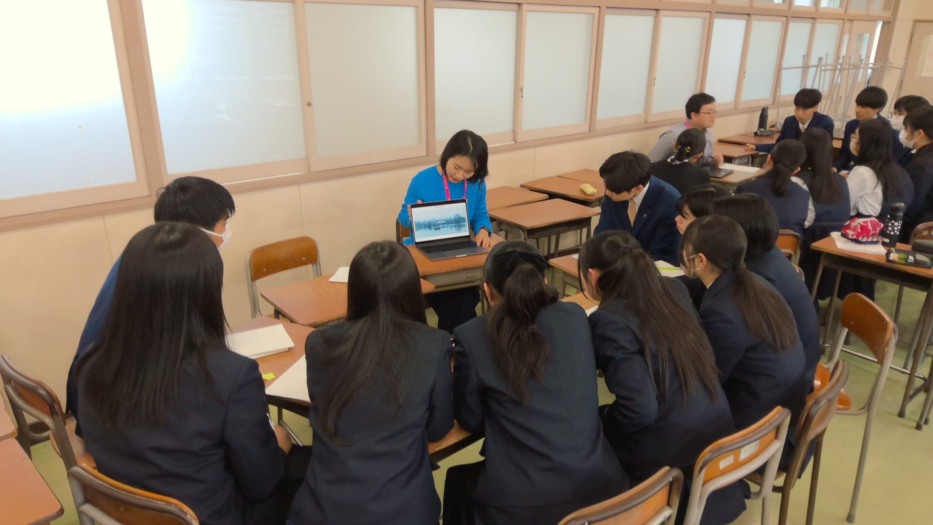 On February 3rd, six doctoral students selected for the MNS program visited Okazaki High School and served as instructors for an English Communication Training session. The instructors came from a diverse range of countries: two from China, one from Sri Lanka, one from Italy, one from Indonesia, and one from Afghanistan. About 50 students from Okazaki High School participated in the session, listening attentively to presentations about the instructors’ home countries and their research at Nagoya University. They actively asked many questions afterward.