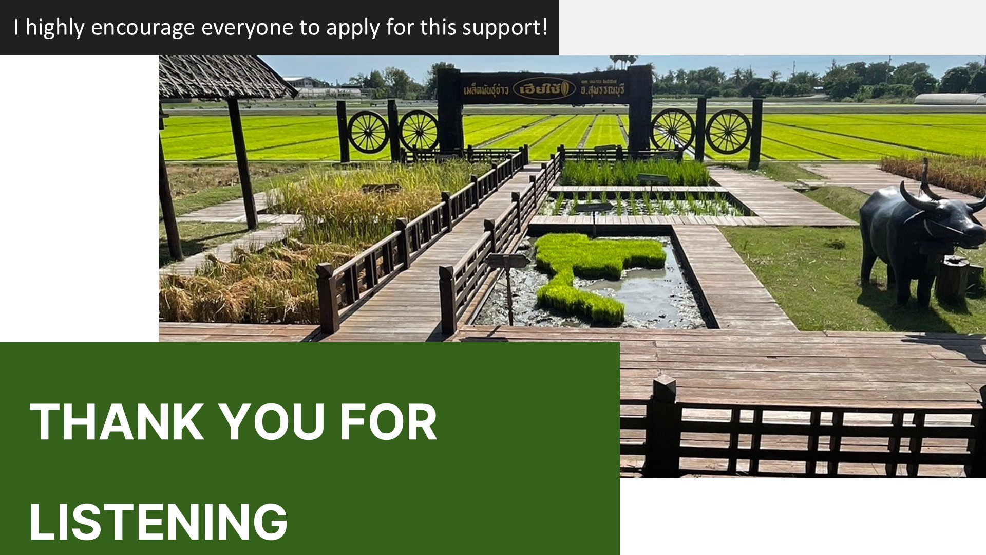 Alongside local graduate students, she attended lectures and engaged in fieldwork on Thai agriculture. Through this experience, she deepened her understanding of grain production, built friendships through group work, and developed valuable networks with local professors. She shared that the program was a highly rewarding experience.