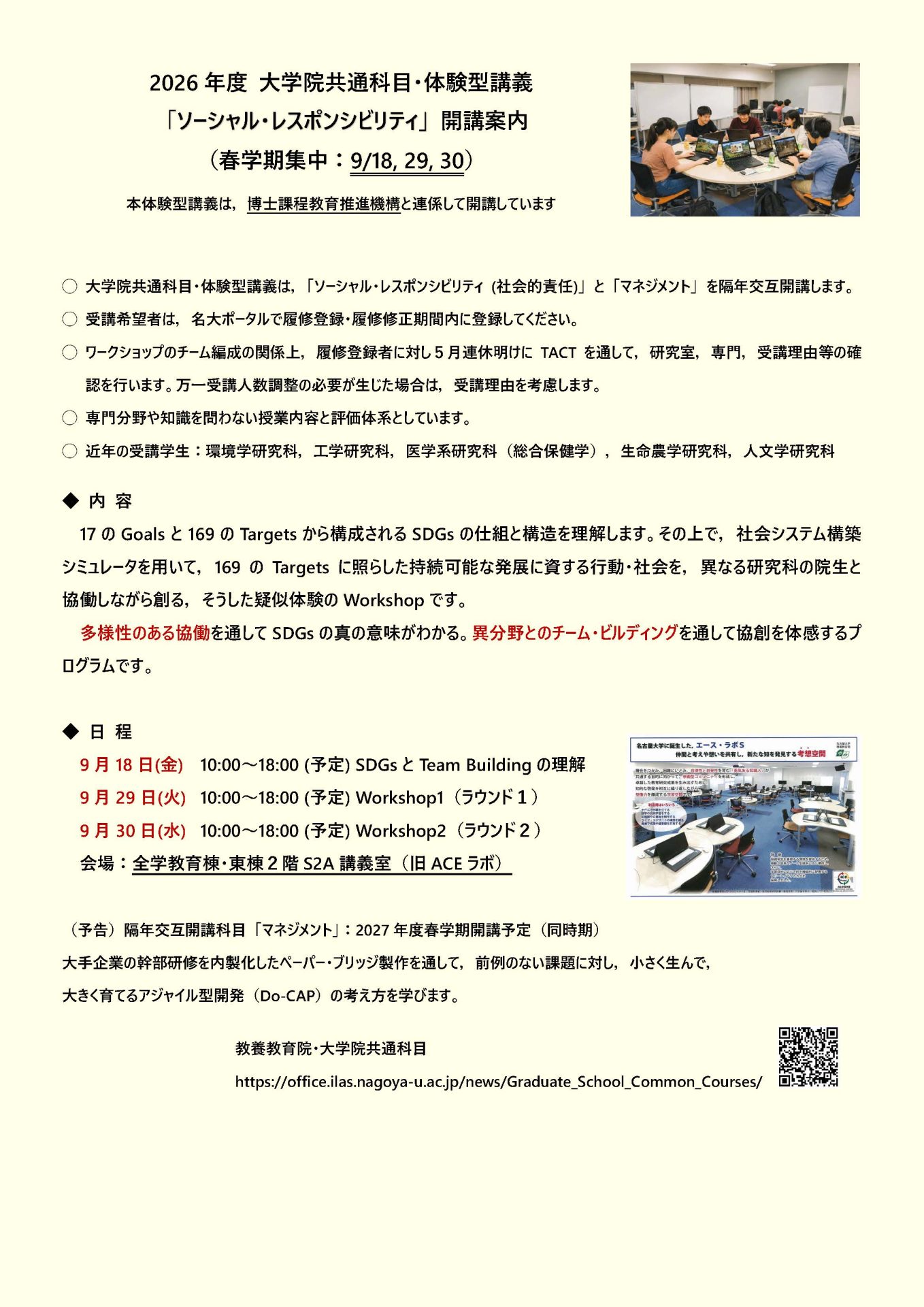 開講通知2026大学院共通科目案内